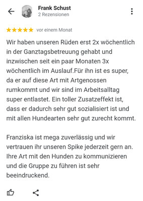 Zusätzlich zur Hundebetreuung wirke ich im Rahmen der Trainings- und Ausbildungsarbeit in der Hundeschule "Hundesofa Potsdam" mit und lasse mein Wissen und meine Erfahrungen aus der sozialen Arbeit und den beziehungsbasierten Ansätzen einfließen. Im März 2022 habe ich mein Studium zum systemischen Coach/Beraterin erfolgreich beendet. Der systemische Ansatz begleitet mich immer. Vor allem hilft er mir in der Kommunikation mit Menschen und ergänzt ganz wundervoll meine Trainings.