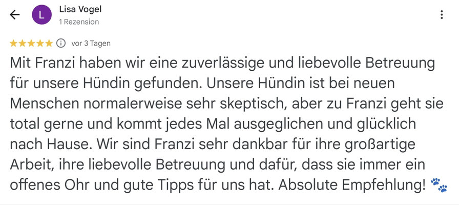 Ein liebevoller und respektvoller Umgang mit allen Tieren bildet die Grundlage meiner Arbeit. Achtsamkeit, Umsichtigkeit und ein besonderes Maß an Einfühlungsvermögen für Hund und Mensch gehören zu meinen Stärken. Als Hundebetreuerin bringe ich viele Jahre Erfahrung mit Hunden mit und bin dabei verantwortungsbewusst und zuverlässig. Meine Ausbildung als Tierkommunikatorin hilft mir in der Hundebetreuung ebenso wie meine Erfahrungen aus der Arbeit als Energietherapeutin für Tiere.